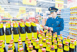 “3·15”国际消费者权益日到来之际,河北省衡水市桃城区工商、食药监等部门对辖区内商场、超市、农贸市场进行拉网式检查,严厉打击销售假冒伪劣商品的违法行为,依法维护消费者合法权益。新华社记者 朱旭东 摄