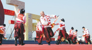 当日上午,周口晚报记者在现场看到,在一阵铿锵有力的锣鼓声中,山西绛州鼓乐队表演的《杨门女将》拉开了展演的序幕。随后,来自广西藤县狮舞队表演的《梅花桩舞狮》,将狮子的喜、醉、乐、猛、动、静等神态、形态展现得淋漓尽致、出神入化,让观众看得眼花缭乱,连连喝彩。接着,浙江越剧、北京京西太平鼓、河北吴桥杂技、江苏留左大鼓等节目相继上演,给现场观众带来了美好的艺术享受。