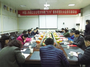3月9日上午,中国人寿周口分公司召开2016年“3·15”服务质量社会监督员座谈会,参加本次座谈会的有周口分公司有关负责人、社会监督员及客服中心相关人员。