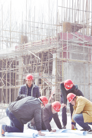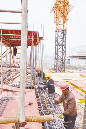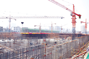3月17日,位于周口市工农路与黄河路交会处东南的龙都红星广场项目工地呈现一片繁忙的劳动景象:几十座塔吊立于项目东西600米长的工地上,机械轰鸣,工人和管理人员正忙于做不同的工作。该项目最西侧的红星美凯龙家居馆在做基础垫层;往东是红星美凯龙爱琴海购物公园,这里最为忙碌,主体工程的正负零即将封顶,工人正忙于一层钢筋的绑扎和支模板;红星美凯龙爱琴海购物公园东是一栋24层的公寓楼工地,正进行基础浇铸工作;24层的公寓楼东是中心广场地下室和一栋29层的公寓楼工地,钢筋绑扎和挖土方工作正加紧展开……来自河南永畅建工集团、河南恒宇建设工程有限公司、江苏城乡建设有限公司、豫东建筑安装公司、周口铁路工程有限公司的工人和技术人员,分5个标段,在这里比技术、比质量、比安全、比速度。700余名工人和管理人员八仙过海,各显神通,在这里上演一场最感人的劳动乐章。