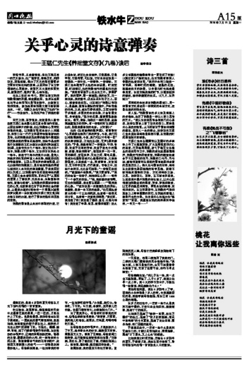 耕耘书田,且成绩斐然,但他不满足单一的艺术修为,他广读博览,借鉴历史,问师访友,探远知微,悟出了艺术的取向需要多方面针对性收纳的道理,从而开始了在文学领域的心灵跋涉,获取艺术大道的四面来风,鼓翼前行,境界扩展,心性怡然。