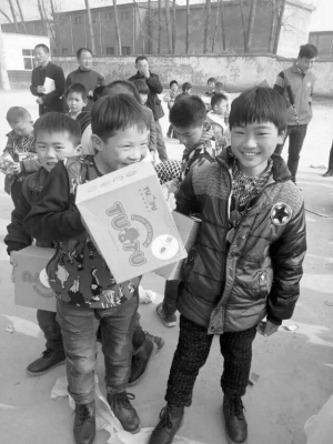 当日14时许,由商水县阳城志愿者协会和周口爱佑公益联手打造的,以“新年新梦、点亮‘微心愿’”为主题的“扬帆计划”留守儿童持续帮扶活动在固墙镇毛屯小学举行。在学校操场上,40名留守儿童静待自己的“微心愿”能够得到实现。孩子们从志愿者手里接过自己盼望已久的礼物后,现场热闹起来。特别是在看到那些未曾谋面的大哥哥和大姐姐在卡片上的留言后,孩子们非常激动。帮留守儿童穿上衣服、打开组装玩具之后,志愿者又和他们一起做起了游戏。