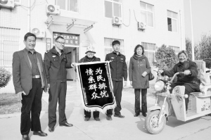 本报讯 3月23日,商水县城关乡董庄行政村王庄村村民柴秀兰拨打本报新闻热线称,市公安局文昌分局民警为其追回被盗电动三轮车,她想借本报表达对民警的感激之情。