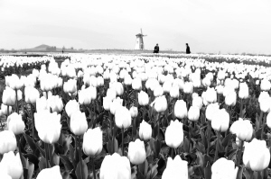 3月24日,游客在合肥大杨镇半岛花博园内观赏郁金香。