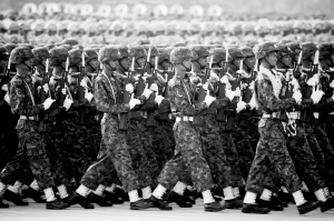 3月27日,在缅甸首都内比都,缅甸士兵参加阅兵仪式。
