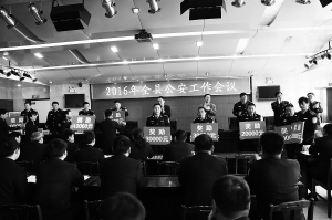 该县公安局政委赵红建宣读了《关于对2015年度先进集体、先进个人的表彰决定》,现场为获得先进的派出所、交警大队等基层公安队伍颁发18万元奖金。