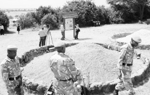 3月30日,在肯尼亚内罗毕,肯野生动物管理局的巡逻员们聚集在此前被焚毁的象牙灰烬周围。