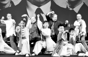 洪金宝、七小福成员元华等与小朋友一起表演功夫