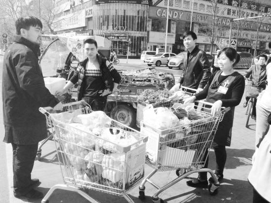 为了招揽客户,3月31日上午,周口中心城区七一路一家超市开展为市区客户送菜上门服务。晚报记者 徐松 摄