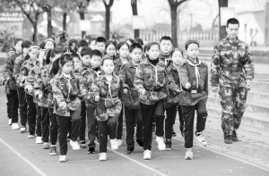 3月30日,孩子们参加队列训练。