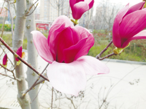 春天来了!瞧,连翘、玉兰等开得缤纷热闹。