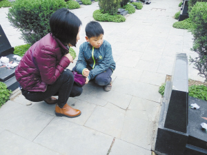 当日上午,到烈士陵园祭扫烈士陵墓的市民络绎不绝(图一)。在烈士陵园一角,市民赵女士耐心地给儿子讲解烈士的生平事迹(图二)。赵女士告诉周口晚报记者:“我儿子叫王奕阳,是实验小学一年级学生。今天上午,他做完作业,我给他讲什么是清明节?什么是烈士?可他就是似懂非懂,所以我干脆把他领到烈士陵园瞻仰祭扫,让他现场感受这里的庄重氛围。”