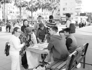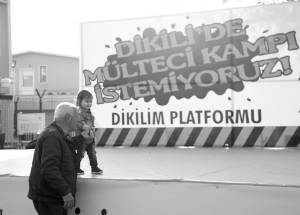 4月3日,人们在土耳其迪基利一个广场的请愿处签名,不希望难民留在迪基利。