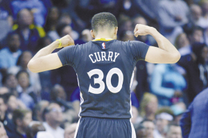 当地时间4月9日,勇士队球员库里在比赛中。当日,在2015~2016赛季NBA常规赛中,金州勇士队客场以100∶99战胜孟菲斯灰熊队。