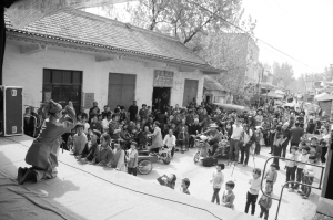 演员在台上表演,村民在台下观看。4月9日是农历三月初三,淮阳县漕河乡栗集村延续上百年的庙会如期上演,吸引来很多村民。