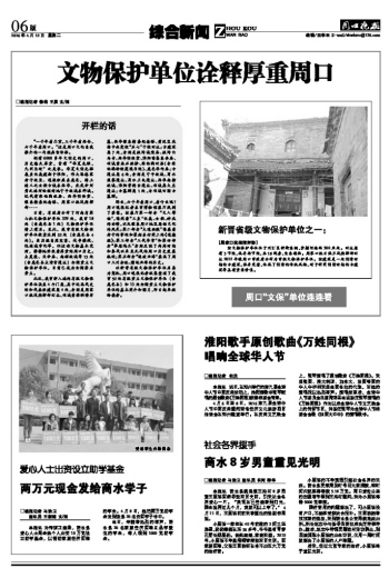 以新晋省级文物保护单位名录为契机,周口晚报记者收集整理了我市52处省级重点文物保护单位(含鹿邑县)和13处全国重点文物保护单位的基本简介和图片,即日起奉献给读者。