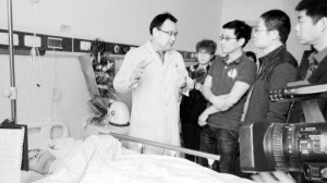 4月12日上午,周口晚报20多名微友到医院看望顾铁牛,并把大家捐赠的3500多元钱交给顾铁牛家人。