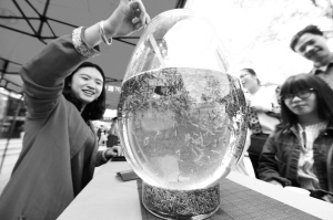 4月17日,茶艺师向市民赠饮刚沏泡的茶叶。当日,“2016全民饮茶日暨第五届万人品茶大会”在杭州茶都名园主会场启动。本次活动以“彰显茶都风采,普及全民饮茶”为主题,现场展示西湖龙井手工炒茶技艺,演绎传统茶席、茶礼、茶艺、茶具,邀请游客免费品尝,传扬中华茶文化。