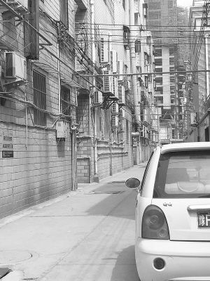 中阳馨园临街楼外墙上安装了不少排气管道和空调外机