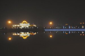 白天,市文化艺术中心在蓝天白云的映衬下,显得高大雄伟;夜晚,华灯初上,她犹如一颗璀璨的夜明珠,特别是站在对面的周口和谐公园里看她在水中的倒影,更加漂亮迷人。