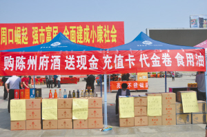 4月15日上午,开幕式刚刚结束,一位市民就来到了天地酒业的展位前,认真咨询、品鉴周口老名酒淮陈酒,并爽快地买了一提,还乐呵呵地对记者说:“我一直都非常喜欢淮陈酒,今天正好碰到打折,平时这个价格根本买不到。”这是本届酒水展上成交的首单酒水生意。之后,泸州老窖、陈州府等商家也都开始了销售优惠活动。“现在是白酒淡季,我们的促销力度很大,这几款畅销酒都是特价销售,还送礼品,切实让市民得到了实惠。”当日下午,在展会现场,陈州府经销商边发宣传单边向来往市民介绍。