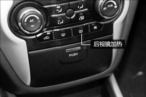 开启后视镜加热开关时,要避免与车前挡风玻璃弄混。虽然都是三条弯曲的向上的箭头,但图形是不一样的。虽然车辆不一样,按键的位置不一样,但是加热开关图案是一样的。