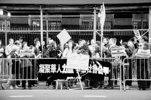 4月19日,在美国纽约,华裔示威者聚集在布鲁克林区高等法院外。