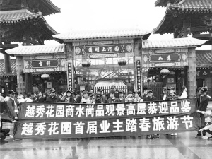 本报讯 春天正是出游的好季节,4月16日,越秀花园首届业主春游节正式拉开帷幕。几十名新老客户在越秀花园工作人员的带领下愉快地开始了开封清明上河园之旅。
