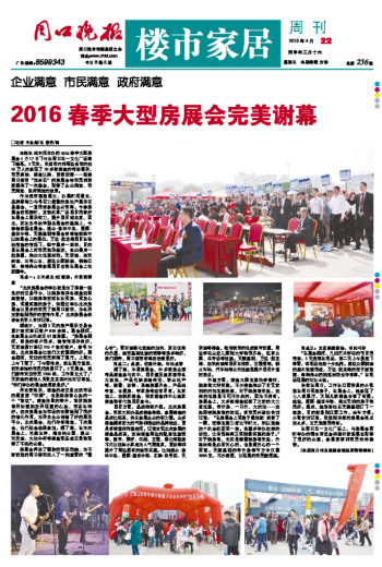 本报讯 由本报主办的2016春季大型房展会4月17日下午在周口五一文化广场落下帷幕。3天来,来自市内和周边县市的近10万人次参观了20多家楼盘的精彩展示,市民咨询、楼盘认购、商家助演……堪称周口楼市“试金石”的房展会给市民和商家提供了一次盛会,取得了企业满意、市民满意、政府满意的效果。