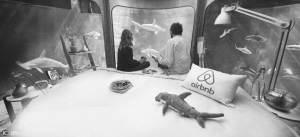 近日,美国短租网站和巴黎水族馆合作,在4月11日至13日,邀请三组幸运的客人,入住被鲨鱼围绕的360度透明房中。这透明的房间建在约10米深的300万升水里。水里有35条鲨鱼,而房间里只有一张床、一个卫生间和一些基本配置,也有早餐供应。进出房间,主要通过一个梯子。可能由于梯子的承重,房东要求2位房客体重加起来不能超过380斤。入租的房客有机会能与鲨鱼“同床共枕”,是