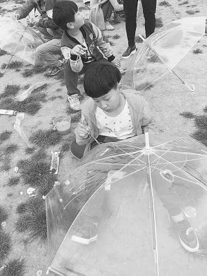 买上一把伞,献出一份情。在义卖环节,许多家长以15~20元的价格买下孩子们绘出的爱心伞。