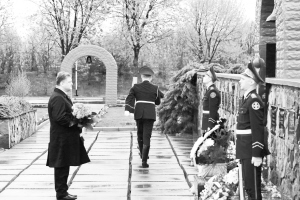 当日,乌克兰政府举行切尔诺贝利核电站事故30周年纪念日活动。乌克兰总统波罗申科向30年前核事故牺牲人员纪念碑敬献鲜花并默哀。1986年4月26日,位于乌克兰北部靠近白俄罗斯边境的苏联切尔诺贝利核电站4号机组突然发生爆炸,造成30人当场死亡,逾8吨强辐射物泄漏。这起核泄漏事故还使核电站周围6万多平方公里土地受到直接污染,320多万人受到核辐射侵害,成为迄今人类和平利用核能史上最严重的事故。新华社记者 陈俊锋 摄