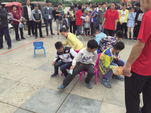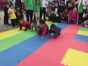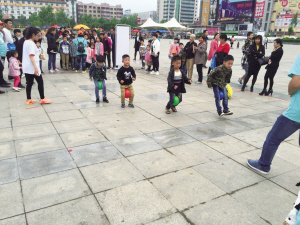 上午10点,平安人寿周口中支区经理伦仑宣布2016年客户服务节正式开幕,并预祝客服节取得圆满成功,现场随即变成欢乐的海洋。本次客服节以“送健康、送快乐、送服务、送爱心”为主题,设有“宝宝向前冲”“快乐羊角球”“幸福圈”“抢板凳”等运动项目,吸引众多客户携自己的宝宝踊跃参与。活动当天细雨濛濛,但在现场火热气氛的感染下,轻柔如丝的春雨反而让客户们热情更加高涨。各个游戏环节宝贝们都乐于其中,小朋友们你争我赶,欢乐不断。