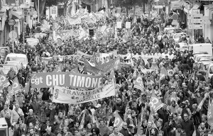 今年游行者关注的主要问题是,即将于5月3日在法国议会下院进入审议的劳动法修改草案。他们要求政府撤回该草案。