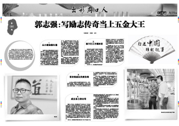 2002年年底,郭志强看到一家不锈钢制品贸易公司的招工广告,便应聘到该公司当业务员。干到第八个月时,郭志强仅业务提成一项就能拿到5000多元。2003年8月,公司老板遇到意外事故,公司无法经营,库房里还有100多吨库存。这可急坏了老板娘。郭志强本分、踏实的性格给她留下了深刻印象,她委托郭志强把库存卖掉,并答应给他一定的返点。郭志强果然不负所托,用了三个月时间就把库存全部推销出去。这时,郭志强有了10万元积蓄。