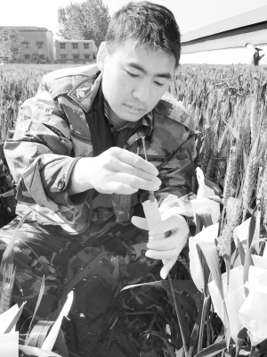 烈日当头,唐建卫和同事们在麦田里忙碌着,他们要小心翼翼地给成千上万株小麦整穗、去雄、授粉、套袋。“现在的我们,相当于小麦的‘红娘’,要让小麦里的‘高富帅’配对‘白富美’。”唐建卫笑着说,“给它们配对可不简单,要根据特性进行,不合适的‘红线’不能乱牵。”