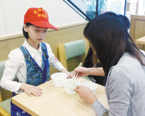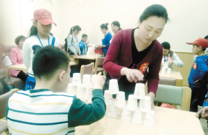 5月7日,本报小记者正在与妈妈一起聚精会神地做“金字塔”游戏(右图)。
