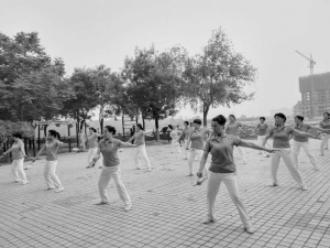 最近,每天早上6时30分左右,总有一群人在市区中州大道桥桥南的滨河公园里,伴随着市歌《周口 我可爱的家乡》,练习柔力球动作(如图)。她们准备参加9月份在平顶山举行的河南省柔力球大赛。
