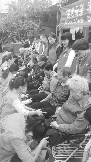 当日10时许,周口晚报记者在现场看到,30名老人端坐在椅子上,爱心商家员工把老人们的脚缓缓抬起放到足浴桶里,从洗脚、揉擦、擦干、修脚,每个动作都很轻缓、仔细。洗脚的同时,义工们还为老人进行肩部按摩(如图)。“大姨,我的手法重吗?”“好好好,很舒服!”74岁的郑老太看着眼前的年轻人为自己洗脚、按摩,虽说有些不好意思,但脸上一直洋溢着幸福的笑容。