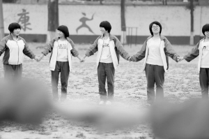 5月9日,巨鹿县第一中学高三学生在做减压游戏释放压力。