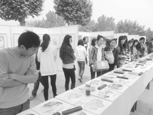 又是一年毕业季,在学生们踏入社会之前,周口师范学院美术学院举办“绘世致市”艺术节活动,请来多名书画收藏爱好者和画廊老板,现场展售学生们的毕业作品。