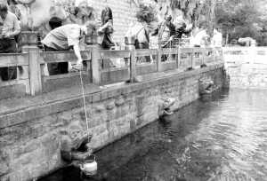 一场降雨过后,济南“七十二名泉”之一的黑虎泉东侧兽首当日复喷。今年入春以来,受持续干旱影响,山东济南地下水位大幅下降,众多泉水出现停喷或喷涌无力现象。