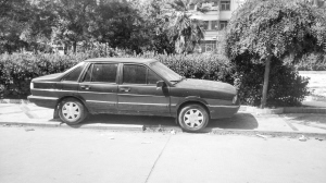 颍河小区里的“僵尸车”不只这一辆。就在不远处,另一辆黑色轿车停在道路一侧(图二),车牌号是豫P40868,车身布满尘土,右前轮瘪了气。由于这辆车停在道牙上,车身剐蹭痕迹比较少。陈先生说,这辆车停放的时间更长。