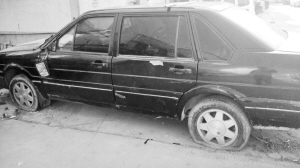 5月11日,周口晚报记者在颍河小区内见到了几辆长期停放的“僵尸车”。一辆黑色轿车停在小区道路的交叉口(图一),车牌号是豫PBD765,4个轮胎都已经瘪了,车身有多处剐蹭痕迹,倒车镜也已破碎。“这辆车已经很久没有人开了。”陈先生上前一把拉开了车门,“小区里的孩子经常爬上车顶,钻到车里。”周口晚报记者发现,这辆车的车顶已被踩出凹痕,车内坐椅也东倒西歪。