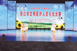 5月12日第104个国际护士节前夕,我市19家医疗机构的200多名医护人员在周口师范学院至善堂举行了一场文明礼仪大赛。这些医护人员表演了精心准备的情景剧、医护礼仪等节目,展现了积极向上的精神面貌。晚报记者 王凯 摄