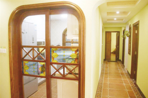 谁说走廊就一定是方的?只要发挥想象和工艺的极致,一切皆有可能。在南宁仙葫开发区的这户人家,把走廊相邻的房间门都做成了弧形,把走廊改造成圆形的中庭,使得空间显得与众不同,也避免了房间门的尴尬。
