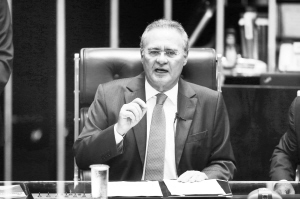 5月11日,在巴西首都巴西利亚,巴西参议院议长雷南·卡列罗斯主持参议院会议,讨论针对总统罗塞夫的弹劾案。