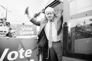 5月11日,在英国西南部城市特鲁罗,前伦敦市长鲍里斯·约翰逊参加支持英国离开欧盟的拉票巴士的启动仪式。