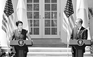 资料图:日本首相安倍晋三(左)和美国总统奥巴马