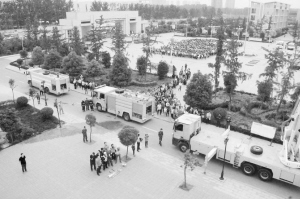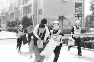 5月12日是全国第八个“防灾减灾日”,当日上午,周口文昌中学举办了一场防震应急疏散演练,强化了师生的减灾防灾意识,提高了他们的地震紧急避险、自救自护能力。晚报记者 宋风 通讯员 谢文贞 摄